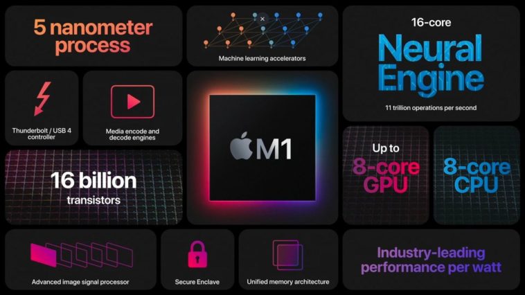 16-ядерный нейронный двигатель. Весь чип M1 разработан, чтобы преуспеть в машинном обучении. Безопасный анклав последнего поколения.
