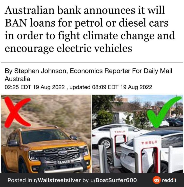 АВСТРАЛИЙСКИЙ БАНК ОБЪЯВИЛ ОБ ОТКАЗЕ ВЫДАВАТЬ КРЕДИТЫ НА ПОКУПКУ БЕНЗИНОВЫХ ИЛИ ДИЗЕЛЬНЫХ АВТОМОБИЛЕЙ