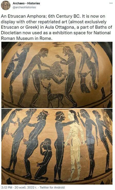 Амфора этрусков, 6 век до нашей эры. Демонстрируется на выставке искусства Риме