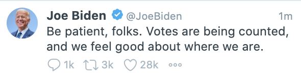 Будьте терпеливы, ребята. Голоса подсчитываются, и мы чувствуем себя прекрасно в нашей позиции.