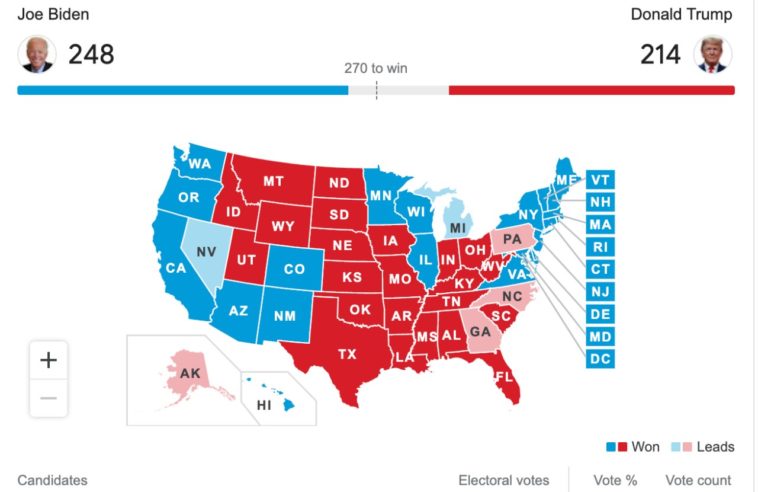 БАЙДЕН ГОВОРИТ, ЧТО ЯСНО, ЧТО МЫ ВЫИГРЫВАЕМ ДОСТАТОЧНО ШТАТОВ, ЧТОБЫ ВЫИГРАТЬ ПРЕЗИДЕНТСТВО