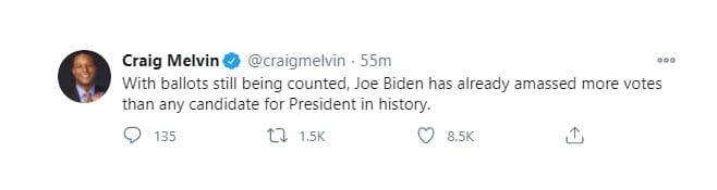 БЮЛЛЕТЕНИ ВСЕ ЕЩЕ ПОДСЧИТЫВАЮТСЯ, А ДЖО БАЙДЕН УЖЕ СОБРАЛ БОЛЬШЕ ГОЛОСОВ, ЧЕМ ЛЮБОЙ КАНДИДАТ В ПРЕЗИДЕНТЫ В ИСТОРИИ.