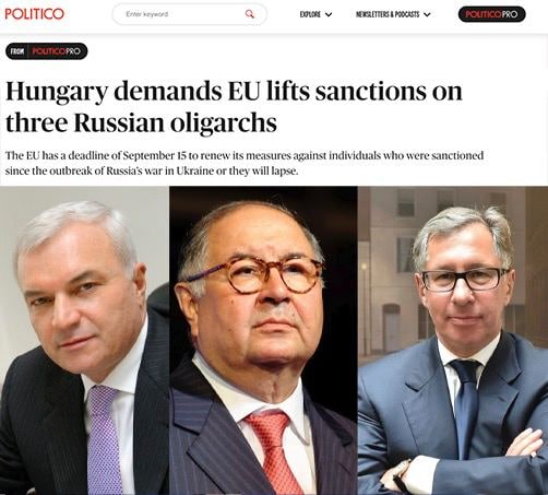 Венгрия попросит Евросоюз снять санкции против российских олигархов Politico.