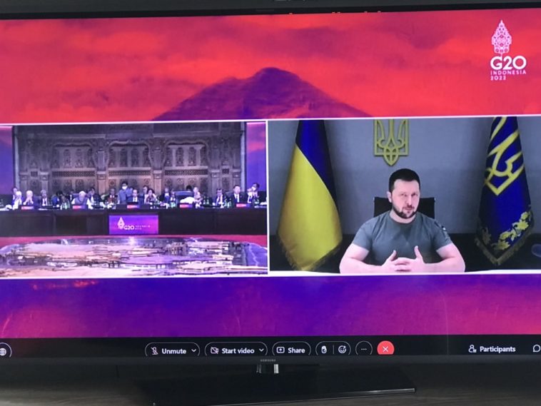Президент Владимир Зеленский в своем видео обращении участникам Большой двадцатки на Бали, призвал прекратить разрушительную потасовку России.