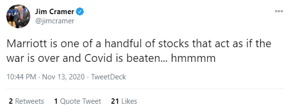 Marriott $MAR — одна из немногих акций, которые ведут себя так, как будто война (вероятно, с вирусом) закончилась и COVID побежден… хммм…