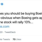 Крамер в Твиттере: Если вам нравятся авиакомпании, вы должны покупать Boeing $BA. Давайте предположим очевидное: когда Boeing получит одобрение на новый Макс, акции вырастут на 10