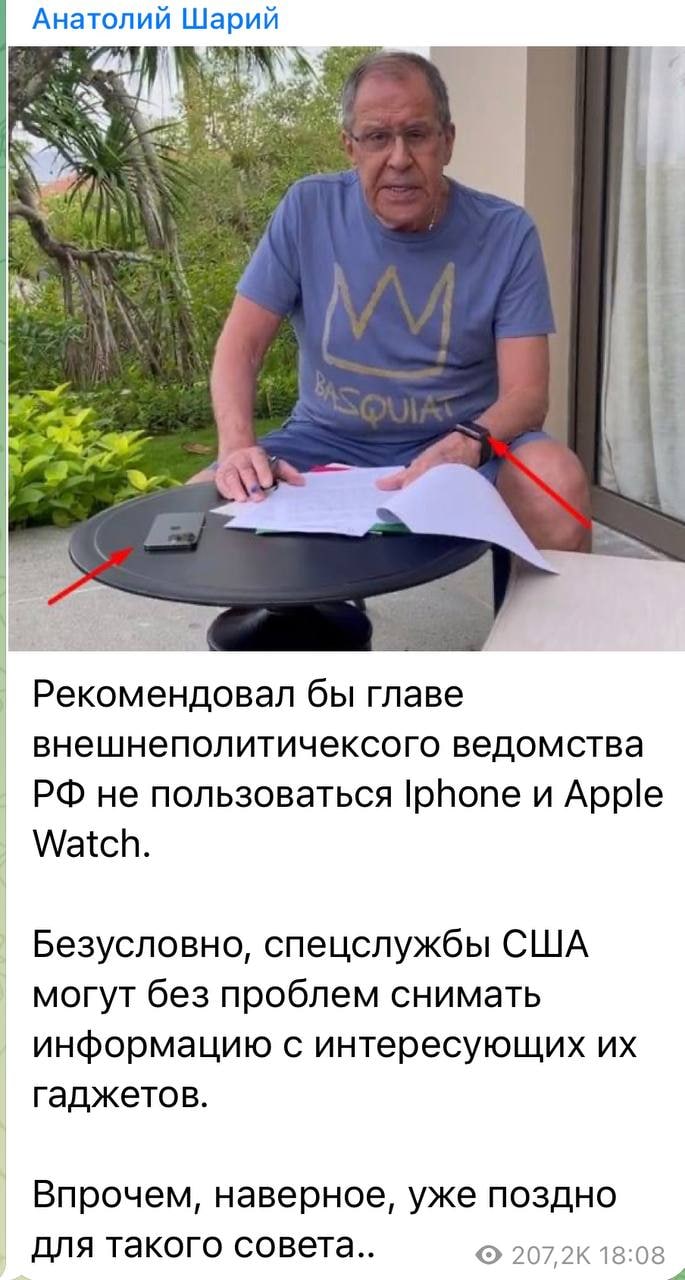 Некоторые пользователи телеграм после записанной речи подметили, что Сергей Лавров пользуется американским iPhone