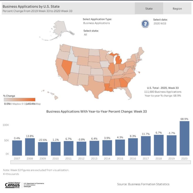 Статистика, вероятно, вызвана высокой безработицей по всей стране, но показывает, что американцы берут дело в свои руки и, это возможно, является попутным ветром для поддержки малого бизнеса.
