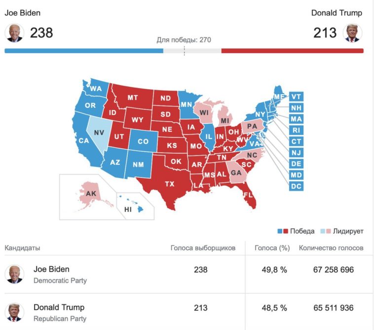 Пол Гронке, профессор политологии Reed College: Кошмар, которого мы опасались, наступил, когда в небольшом количестве штатов результаты не определены, а законность процесса, очевидно, будет оспорена в суде.