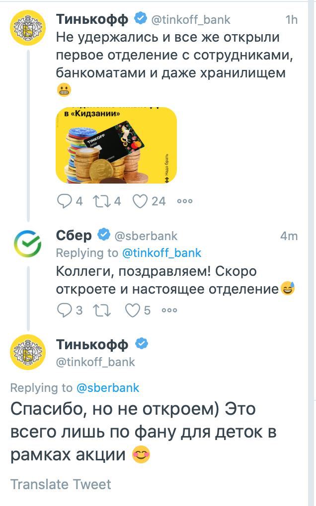 (переписка Тинькофф и Сбера в Твиттер)