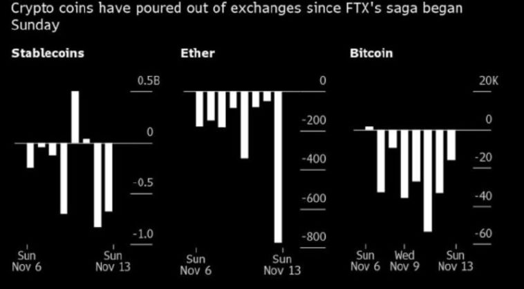 По данным CryptoQuant, после обвала FTX пользователи продали с бирж по всему миру Bitcoin $BTC на 3,7 млрд долларов и Ethereum $ETH на 2,5 млрд долларов за неделю.