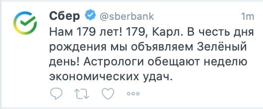 Нам 179 лет 179, Карл. В честь дня рождения мы объявляем Зелёный день Астрологи обещают неделю экономических удач.