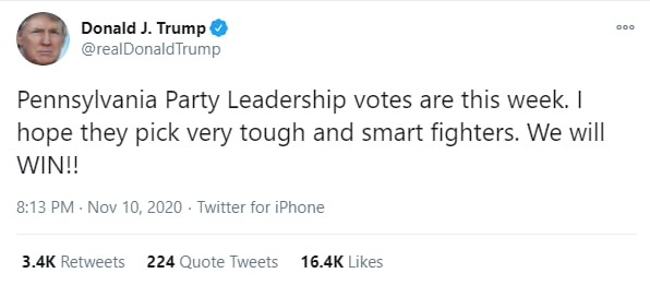 Голосование за лидерство в Сенате Пенсильвании состоится на этой неделе. Я надеюсь, что они выберут очень сильных и умных бойцов. Мы победим