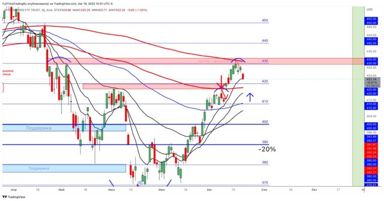 AAPL даже до 10 EMA не дошел, а должен опустить к 20 EMA. Ребята, без изменений после такого рекордного дня. Наша цель 20 EMA на SP500 для фиксации 23 позиций