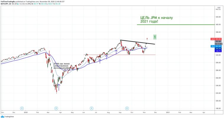 JPMORGAN: мы рассматриваем подтвержденную победу Байдена с вероятным законодательным разделением Конгресса как очень позитивный результат… МЫ ПРЕДПОЛАГАЕМ, ЧТО ИНДЕКС SP 500 ДОСТИГНЕТ 4000 к началу следующего года, а к концу следующего года рынок может подняться еще выше (4500)..