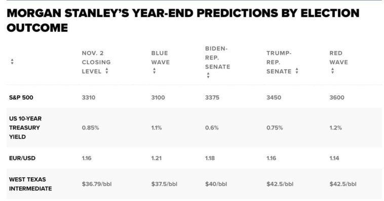 Morgan Stanley $MS основывал свои прогнозы на предположении, что шансы на фискальное стимулирование будут больше, если одна из сторон будет контролировать Белый дом и обе палаты конгресса, в то время как демократическое преимущество приведет к более высокой ставке корпоративного налога.